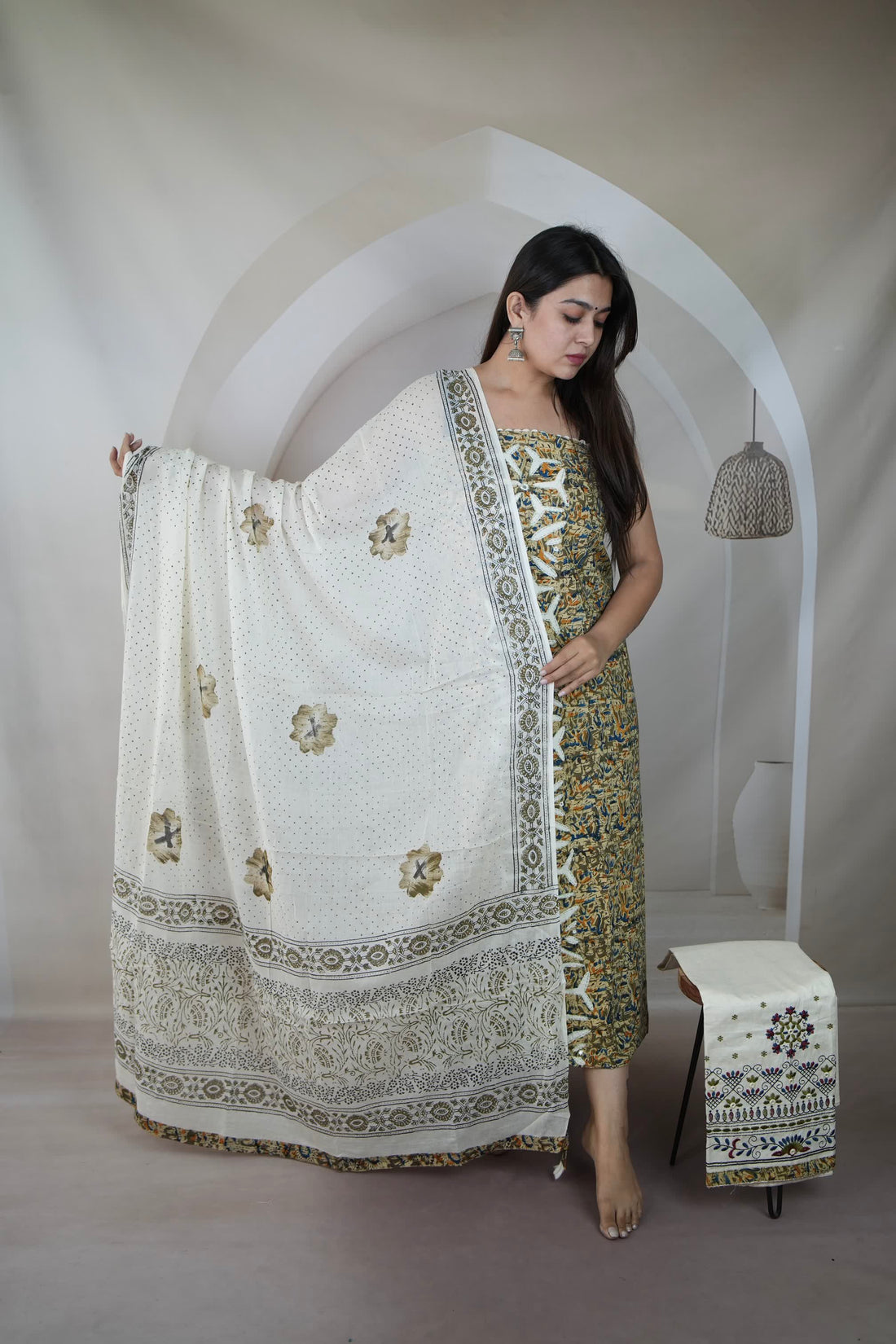 Vegetable Blockprint Kutchhi Cotton Suit Material