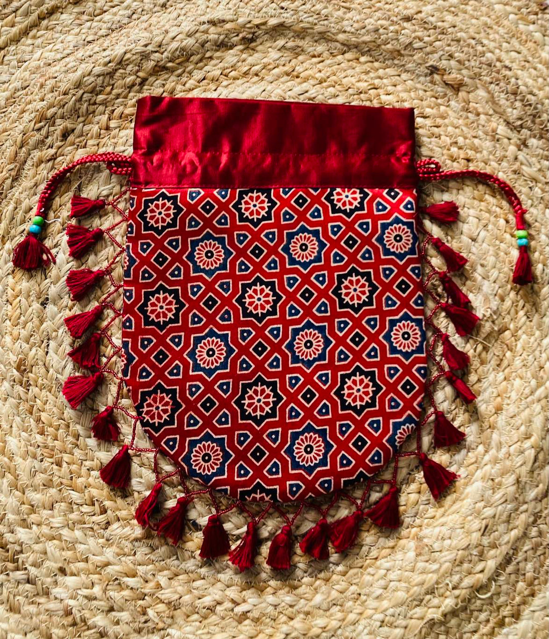 Ajarakh Mashroo Bag Dimensions- 12x14 inches Rich Cultural Fusion: A stunning blend of Ajarakh block...