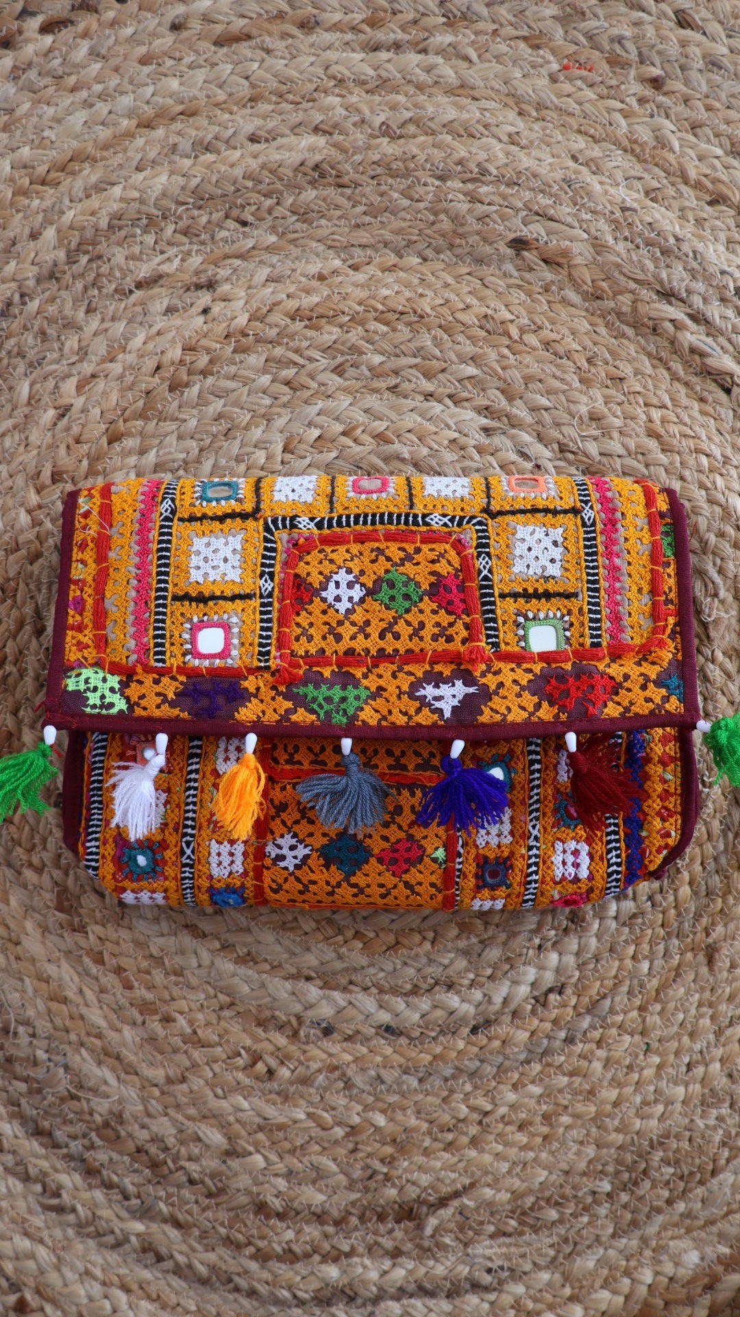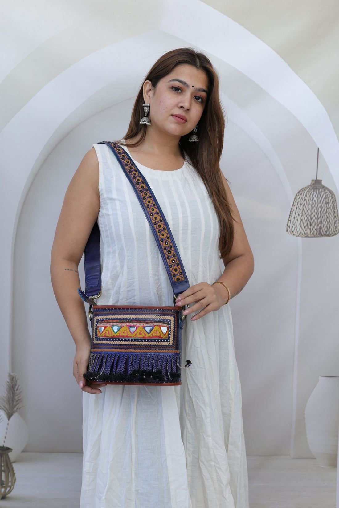 Mirror Embroidered Kutchhi Potli - The Leather Sling Bag