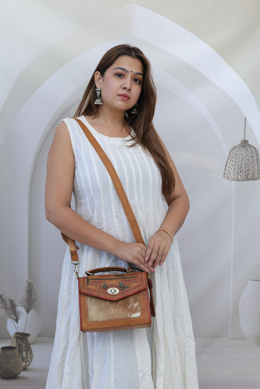 Kutchhi Fur Embroidered Hut - The Leather Sling Bag