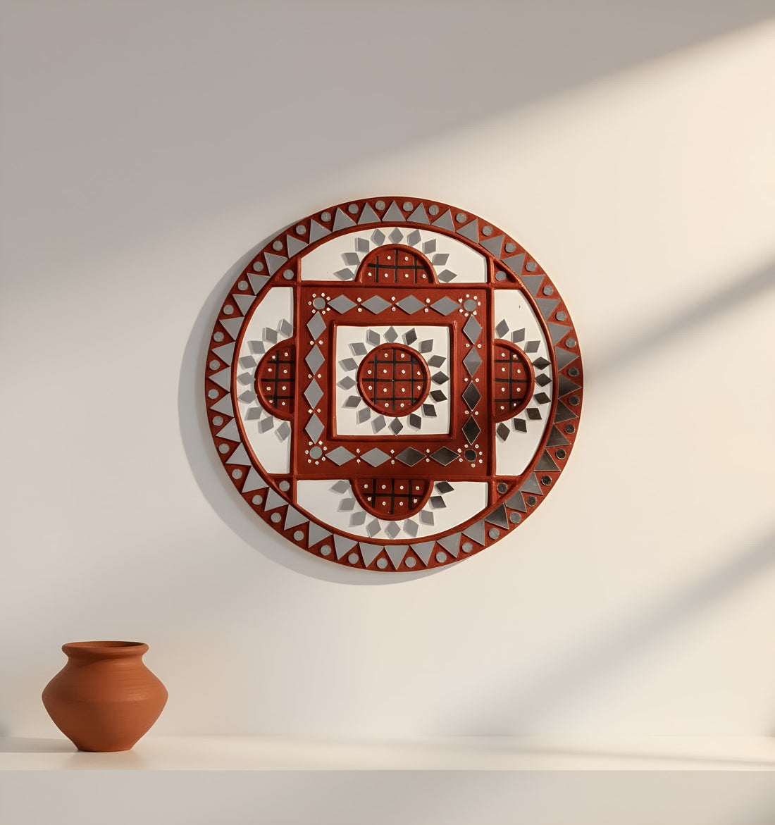 Brown & White Circle Mud Work Frame Wall Decorative(12×12 inches)