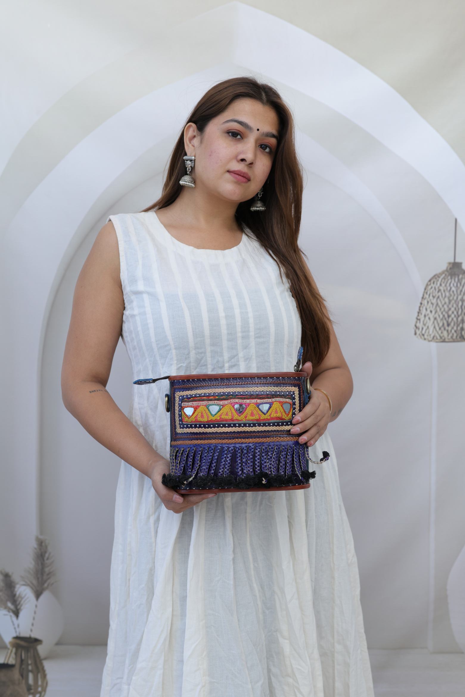 Fumka & Kutchhi Blue Embroidered- The Boho Leather Sling Bag