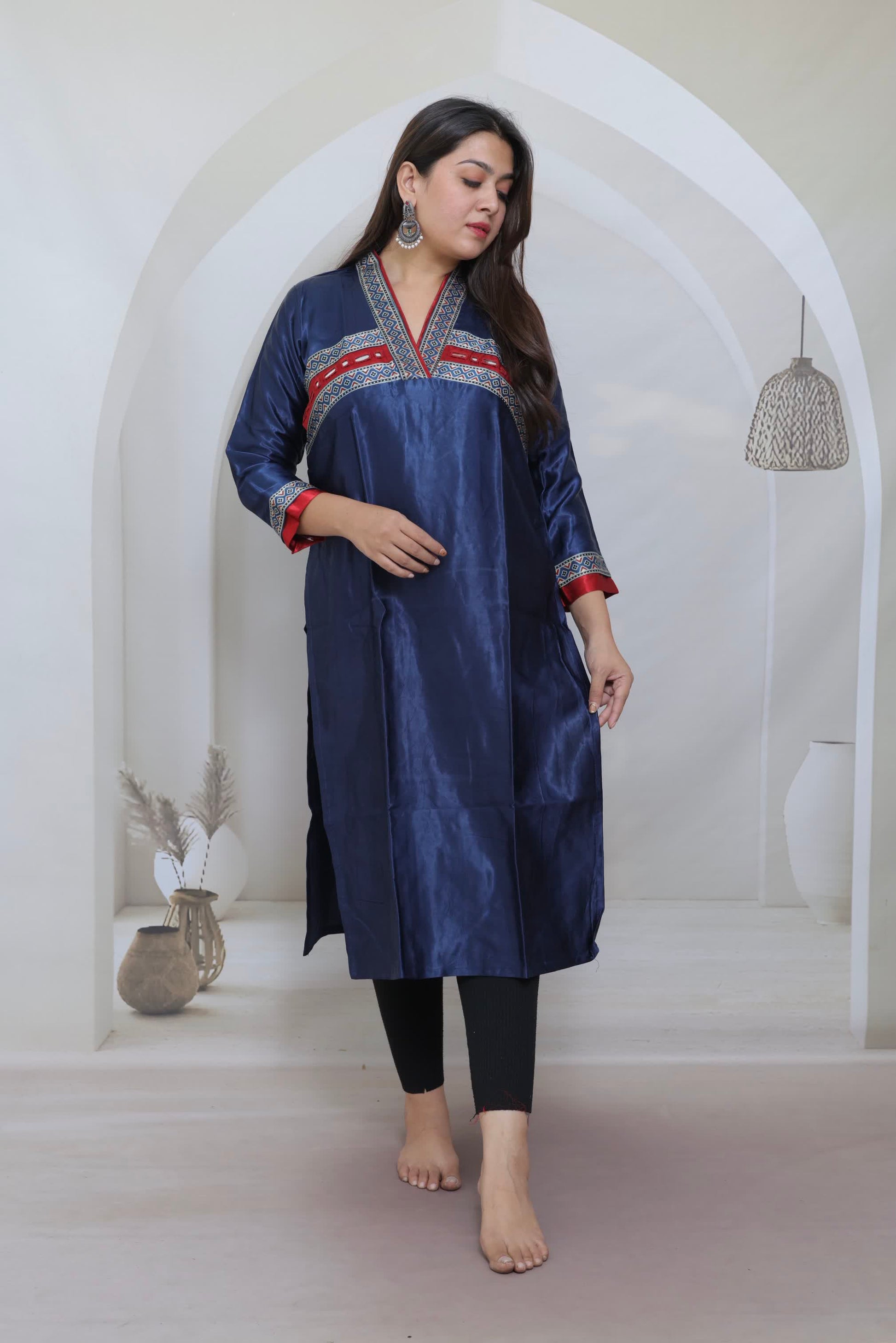 Mishri Mashroo Silk Plain Mirror Collar Straight Kurti