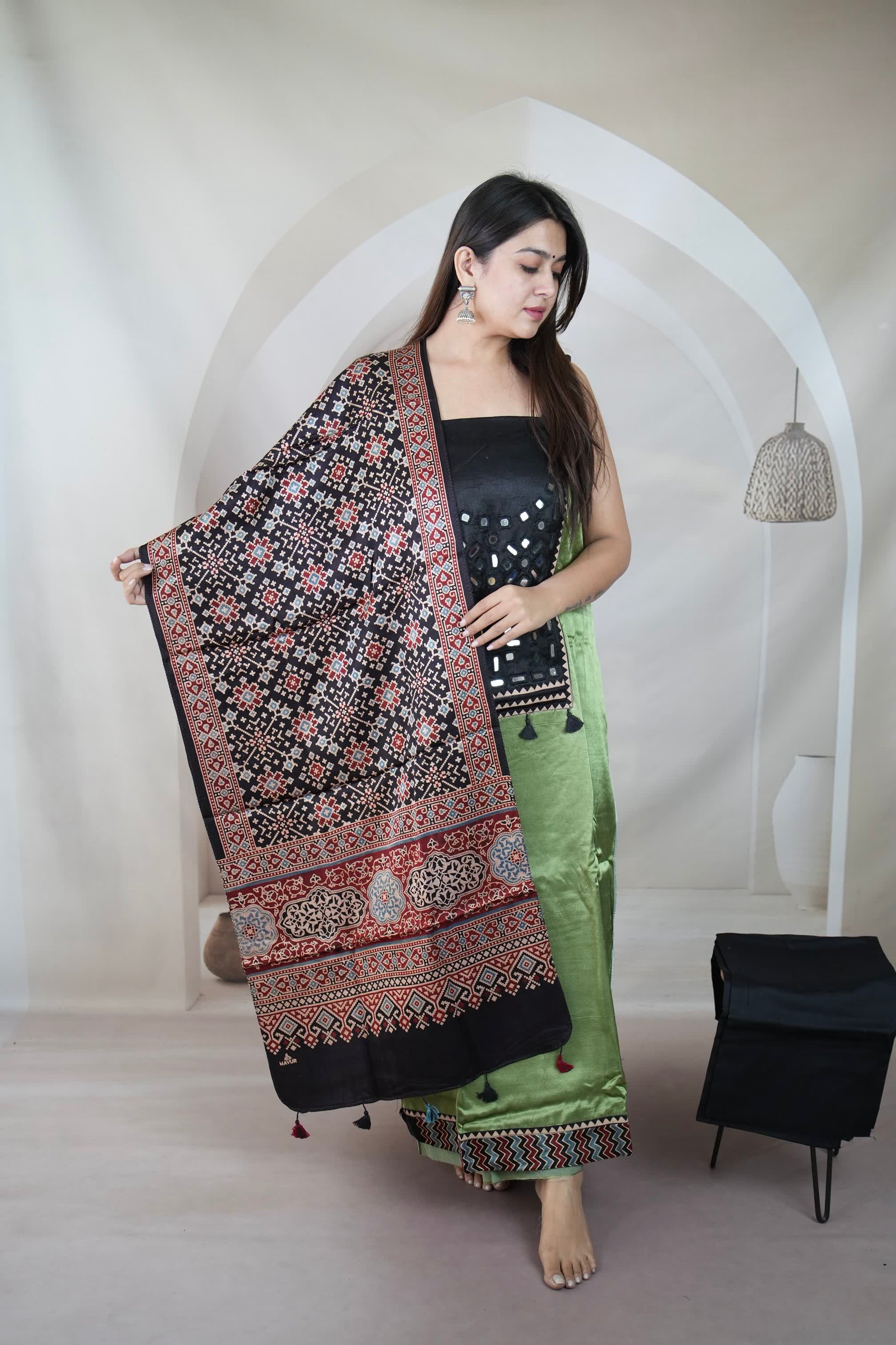 Traditional Mashroo Fabric: A blend of silk and cotton, offering a smooth, luxurious feel.