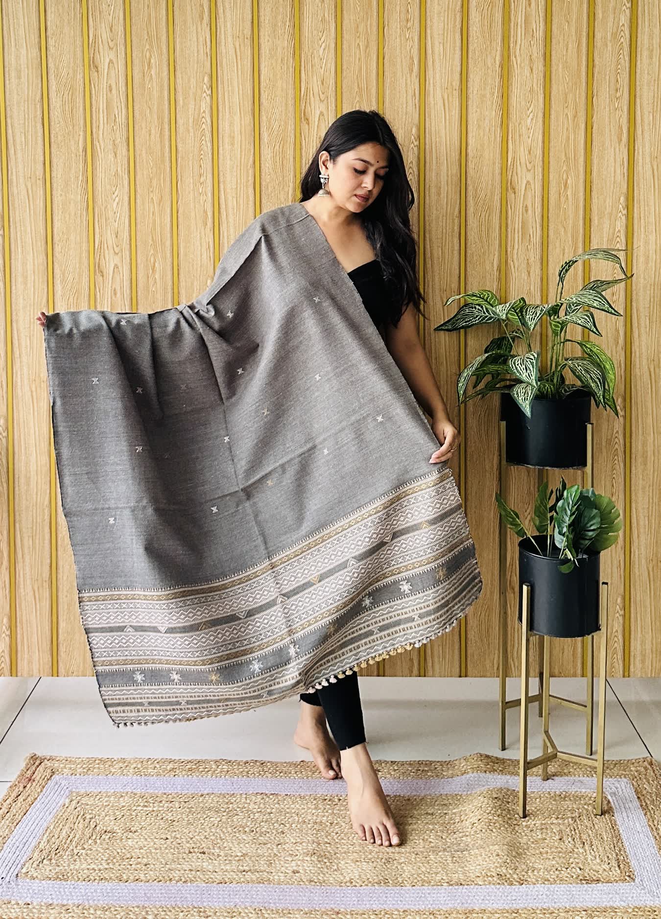 Light Grey Small Buti Bhujodi Woolen Shawl