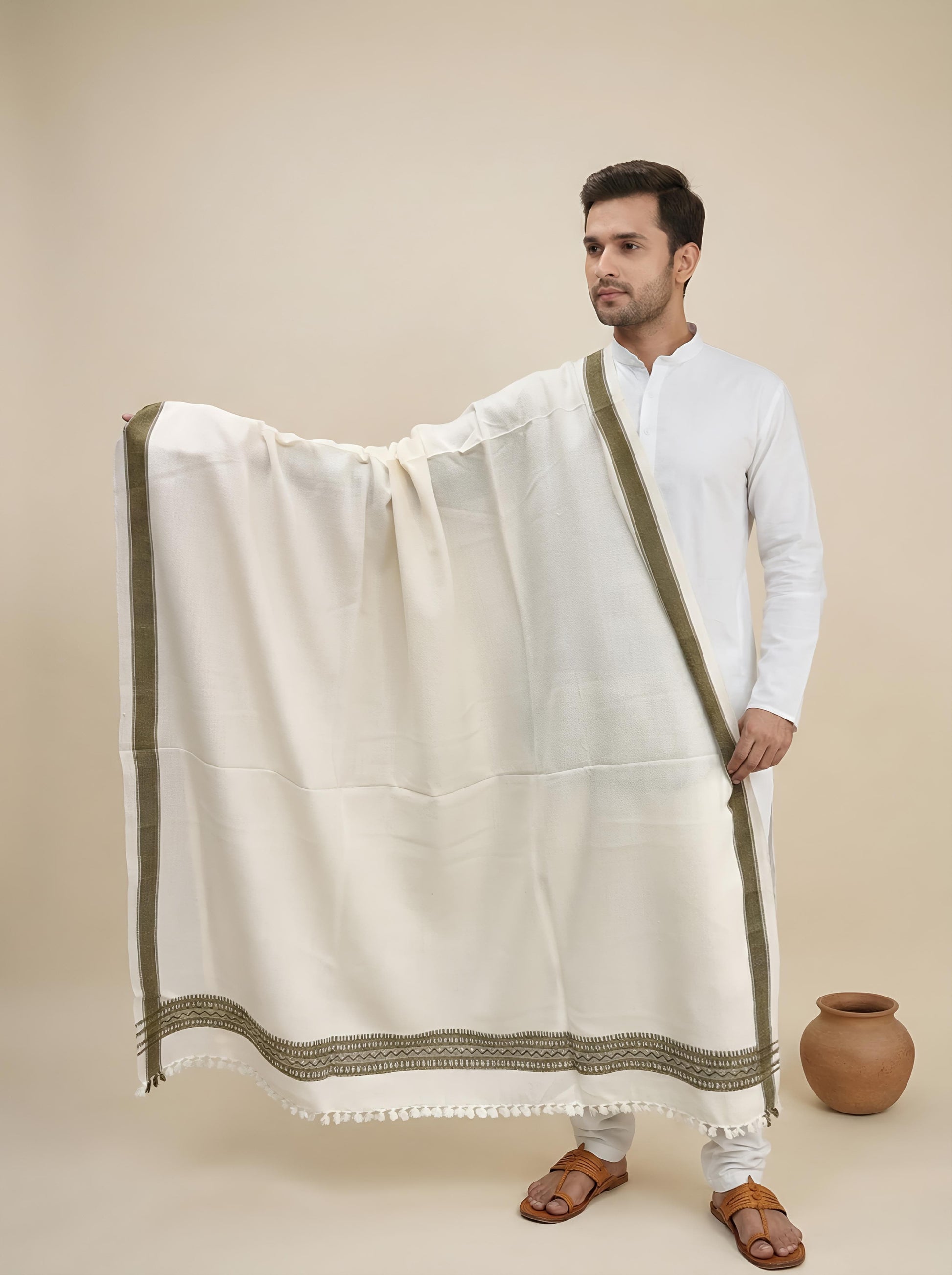 White & Brown Handwoven Bhujodi Woolen Shawl